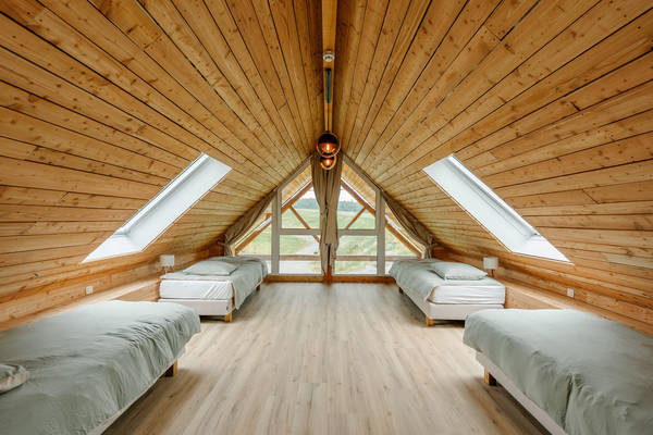 • Verdieping: een grote slaapkamer met 4 bedden (flexibel in te delen voor privacy) en nog een extra slaapkamer voor 2 personen.
