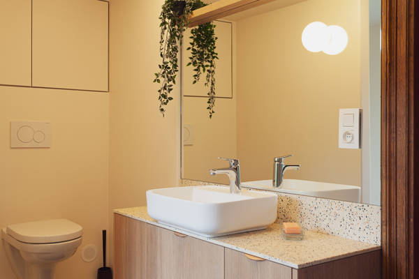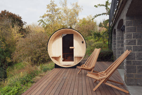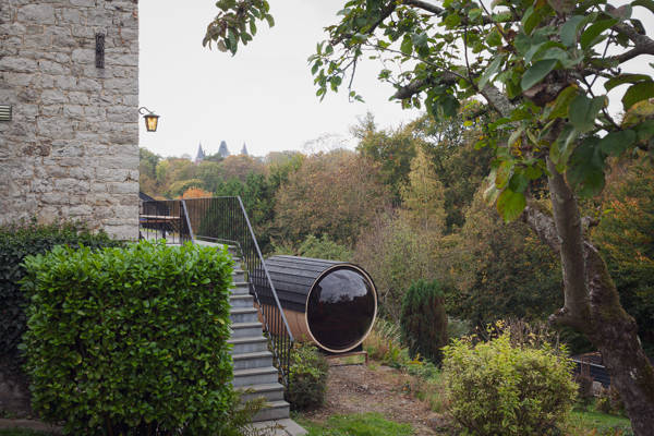 Buiten nodigen twee ruime terrassen uit tot genieten. Overdag kunt u er ontbijten in de ochtendzon, een goed boek lezen te midden van het groen of samen aperitieven met uitzicht op het bos. ’s Avonds wordt het de ideale plek om te tafelen bij zonsondergang of om, in de koelere maanden, heerlijk te ontspannen in de sfeervolle buitensauna met zicht op de natuur.