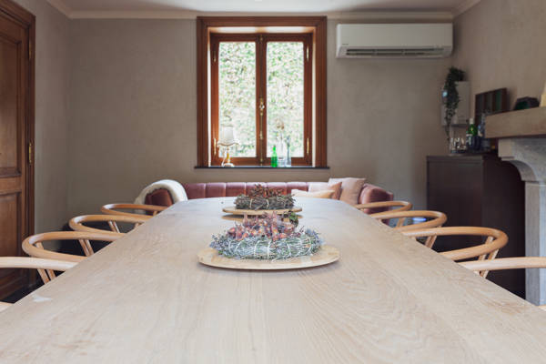 Binnen heerst een warme, huiselijke sfeer. Het gezellige salon met open haard is de perfecte plek om in de winter samen een glaasje wijn te drinken of spelletjes te spelen met vrienden en familie. In de ruime eetkamer ontstaan vanzelf mooie gesprekken en herinneringen die nog lang zullen bijblijven.