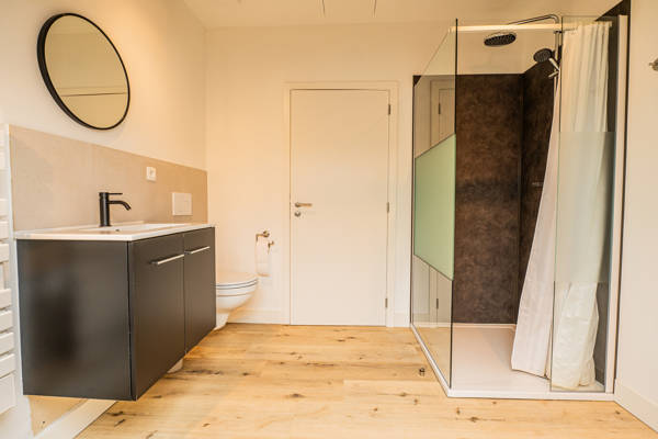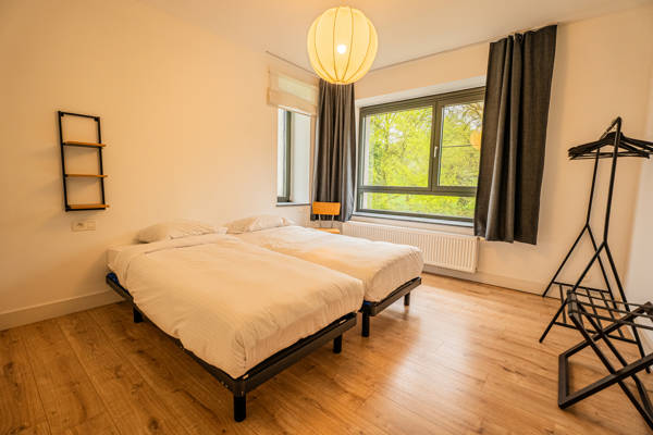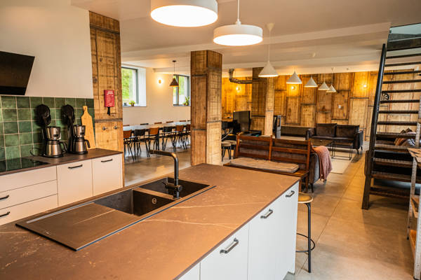 Er is 1 grote leefruimte waardoor u met de gehele groep kunt ontspannen. De capaciteit kan worden aangepast naar 34 door 2 kinderbedden en 2 normale bedden toe te voegen aan de slaapkamers.