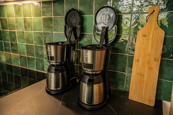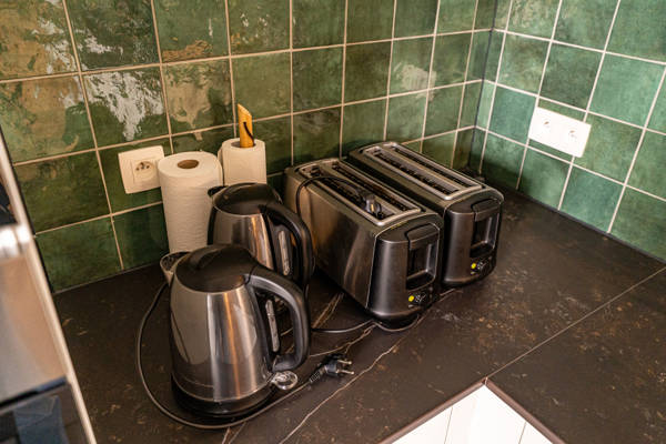 De moderne keuken is voorzien van alle gemakken zoals 2 vaatwassers, 2 koelkasten, 1 vriezer, 2 ovens, 2 combi-ovens, filterkoffiezetapparaat, broodrooster, waterkoker en mixer.