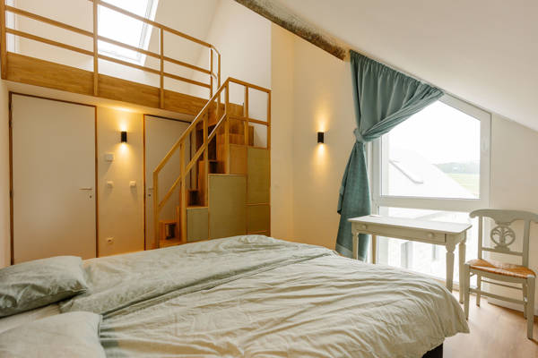 Verdieping: een grote slaapkamer met 4 bedden (flexibel in te delen voor privacy) en nog een extra slaapkamer voor 2 personen.