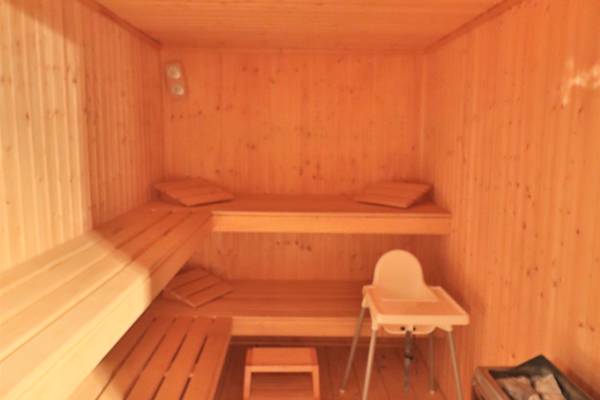 Verdeeld over 3 niveaus, vindt u op de begane grond een grote woonkamer met zithoek en kachel, eetkamer en open ingerichte keuken. U vindt dan een speelkamer/slaapkamer, een doucheruimte met sauna en een wasruimte die toegang geeft tot de kelder/niveau -1 en directe toegang naar buiten. Boven zijn 5 slaapkamers, allemaal ingericht volgens een ander thema en waarvan twee met een klein terras. Ook vindt u er een mooie badkamer met ligbad, douche en toilet.