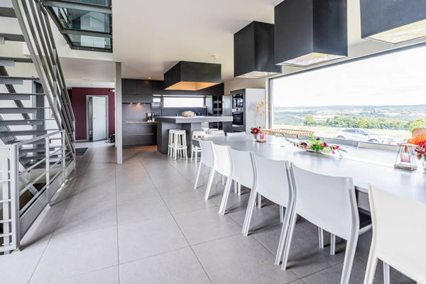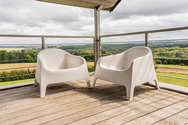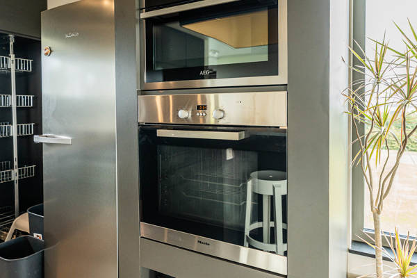 In de living staat een eettafel met 16 bijpassende stoelen. In de keuken vind je een keramische kookplaat, oven met grill, magnetron, vaatwasser, koelkast met vriesvak, koffiezetapparaat en een Senseo.