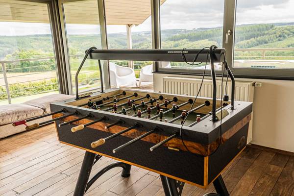 Er is een separaat gedeelte met een tafelvoetbalspel. De ruime sauna met Hammam douche en 1 slaapkamer met een tweepersoonsbed en 1 stapelbed (2 personen) met en suite badkamer met bad, wastafel en toilet liggen op de 1e verdieping. Er is geen linnen voorzien, u dient dit zelf mee te nemen. Kussens, matrassen en dekbedden zijn aanwezig en de maten van de bedden zijn 90x200 en 180x200.