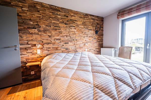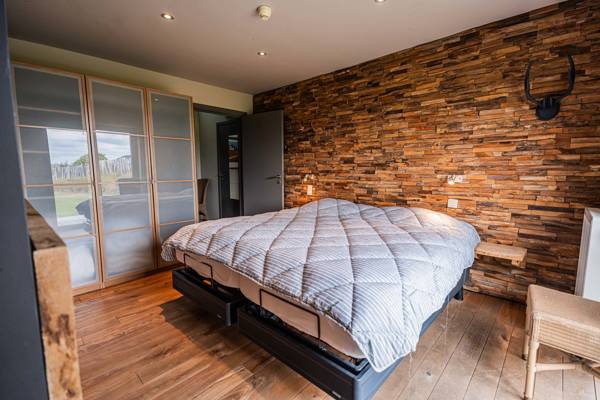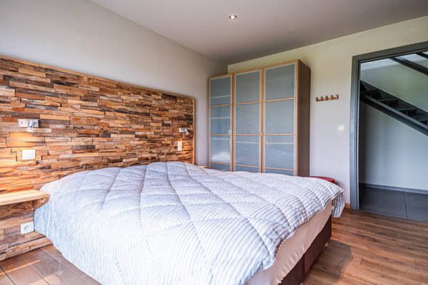 Op de begane grond is de living met openhaard gesitueerd. Hier vindt u ook een slaapkamer met tweepersoonsbed + hoogslaper en een en suite badkamer met Hammam douche en wastafel.