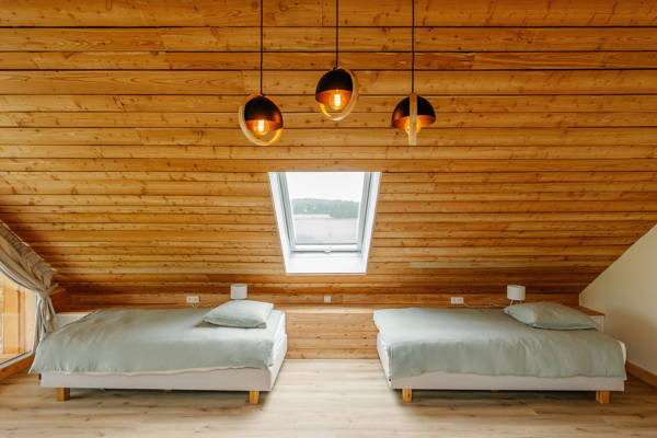 Verdieping: een grote slaapkamer met 4 bedden (flexibel in te delen voor privacy) en nog een extra slaapkamer voor 2 personen.